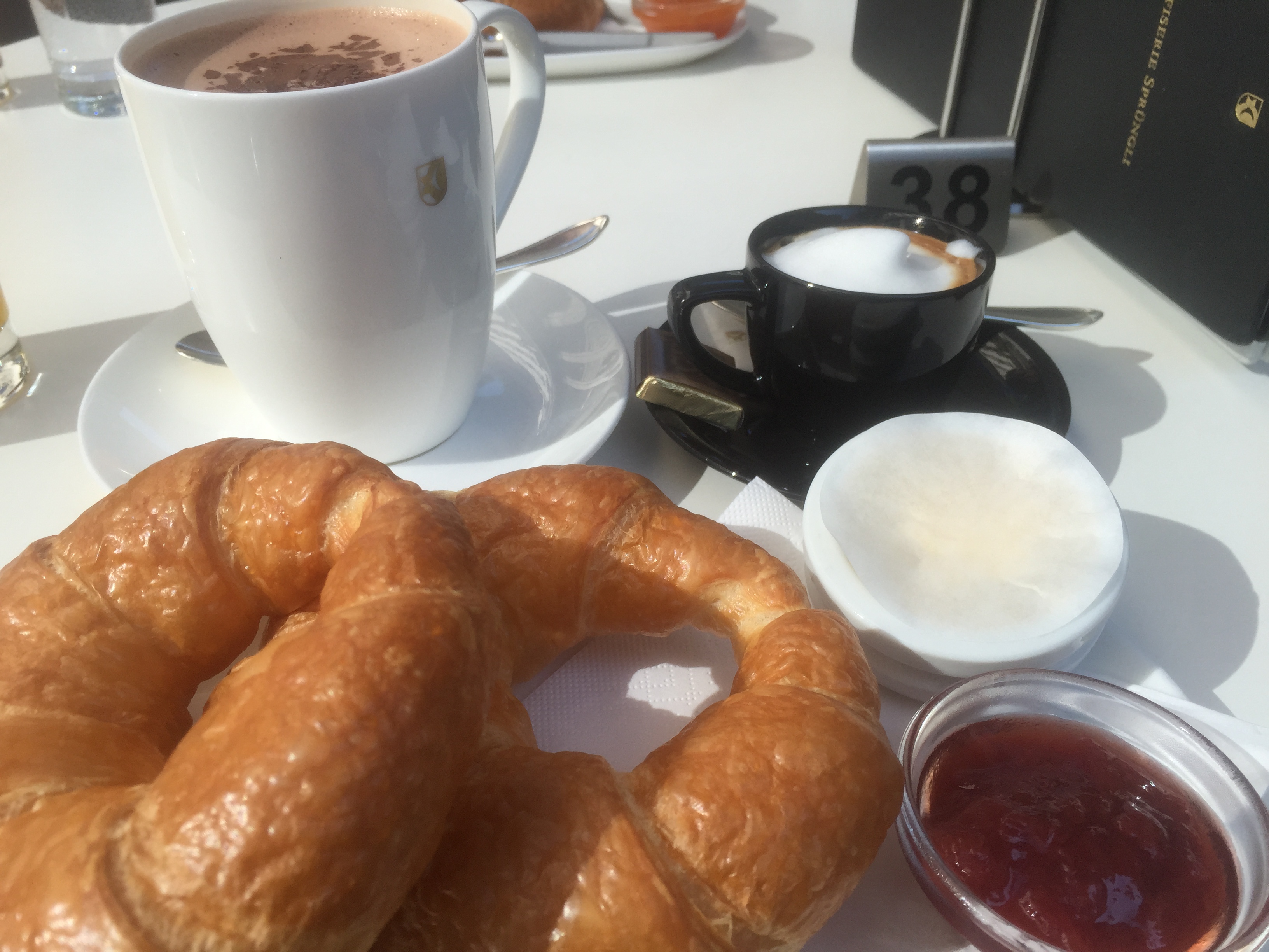 Lastly, let me brag on a Zurich staple. Ever hear of Sprungli? They are world famous for their breakfast buffet and it looked amazing. However, at more than $50/person, it was a bit hard to justify eating $50 of breakfast food. I’m typically up for a challenge, but we were short on time that day. They had an “express” kinda option though! We enjoyed the best that Sprungli had to offer at their side walk cafe and then did a wee bit of shopping in the confiserie!